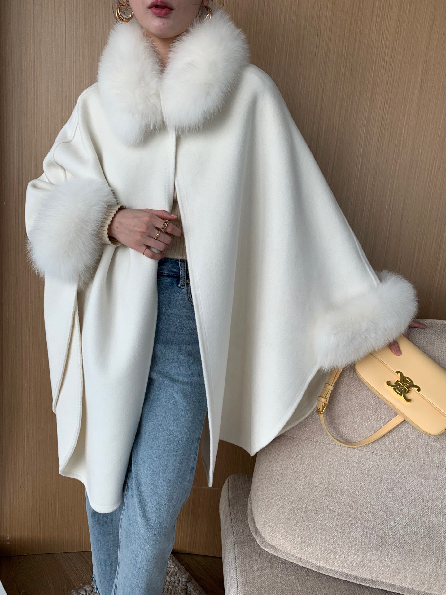 Includes one Cape Fox Fur Collar Cashmere Wavy Coat, the ultimate winter essential